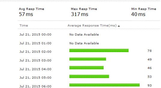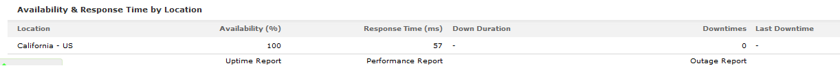 The availability and response time of the web application monitor for each and every monitoring location is expressed in a tabular format. The total availability (%) and Response Time (ms) with down duration from each monitoring location can be deducted from this data.
