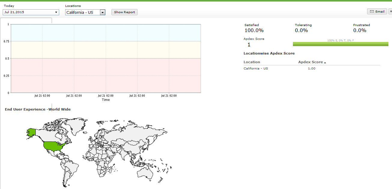 - Response Time and Response Time by Location indicate the location based total time taken to retrieve the entire HTML content of the webpage. Average response time and Average response time by Location data are presented in a tabular layout for easy assimilation.