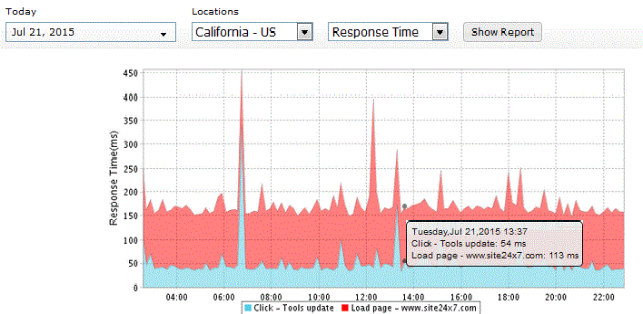 This section exposes the historical information about your website performance along with the availability, response time, transaction time, downtime duration and SLA violation. It also provides the Apdex score, which assesses the end user experience of your web application.