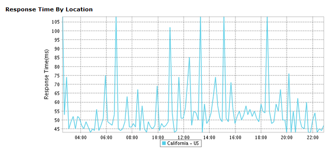 Response Time by Location graph shows the average response time for each day or hour from every monitoring location. This graph can be applied to analyze the average response time of your monitor from different monitoring locations. The location is identified using legend given below the graph.