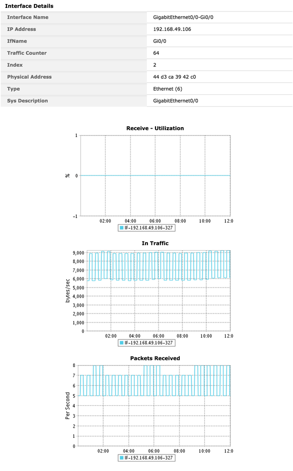 Clicking on an interface will reveal the Interface Details like the In Traffic, Out Traffic, Packets Recieved, Packets Sent and Bandwidth Details.