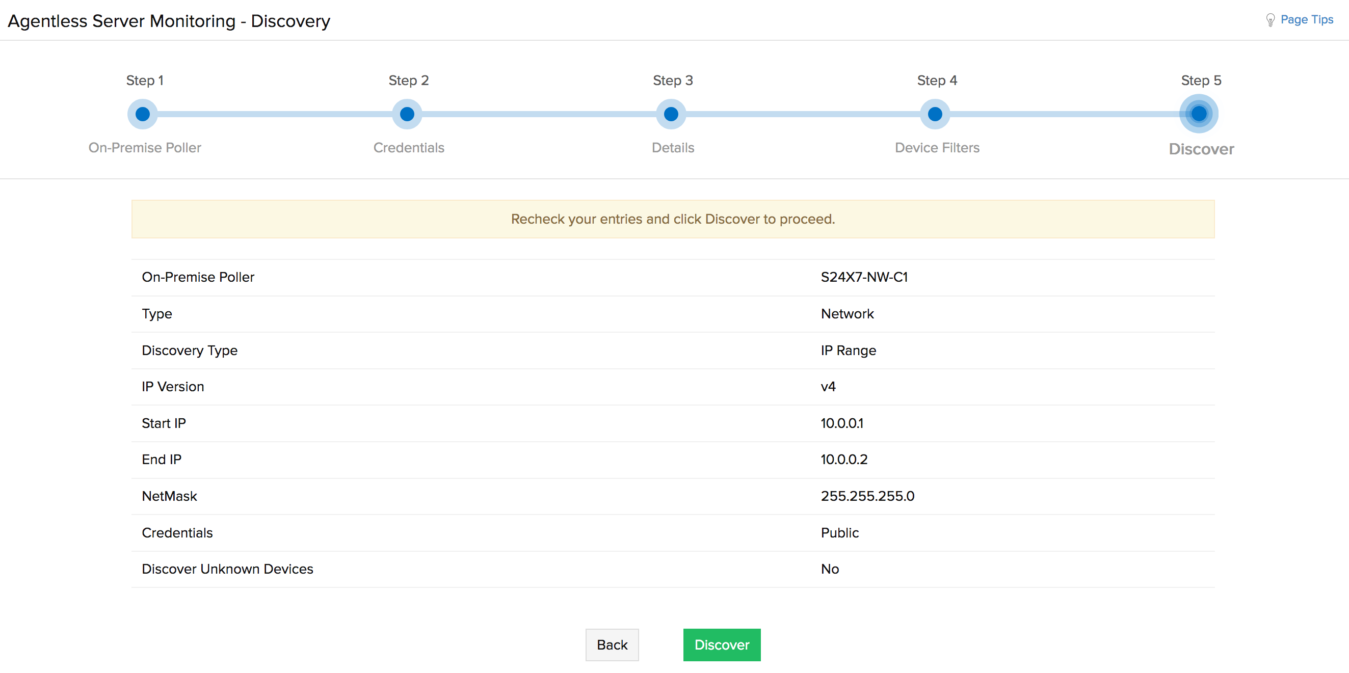 • Discovery Type: Choose Use IP Range or Use CIDR.