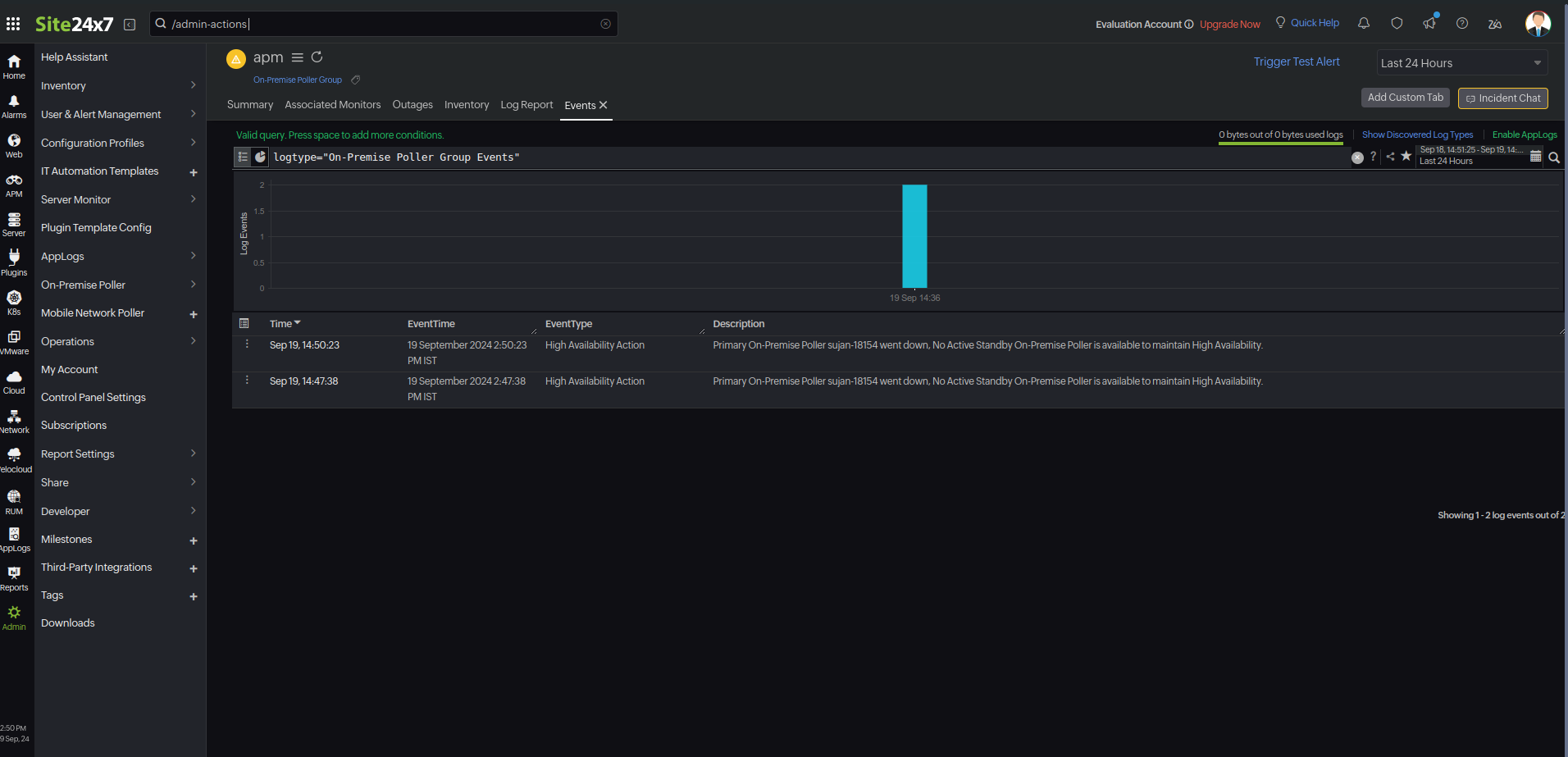 • High Availability actions: Records actions related to High Availability On-Premise Poller operations.