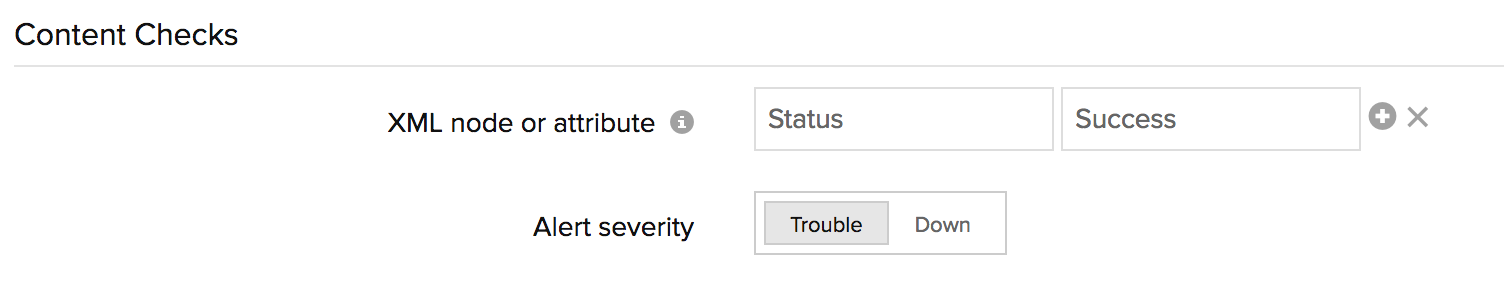 HTTP Response Header Severity : Use the toggle button to specify the Alert Severity as DOWN or TROUBLE. When the test fails an alert will be automatically triggered.