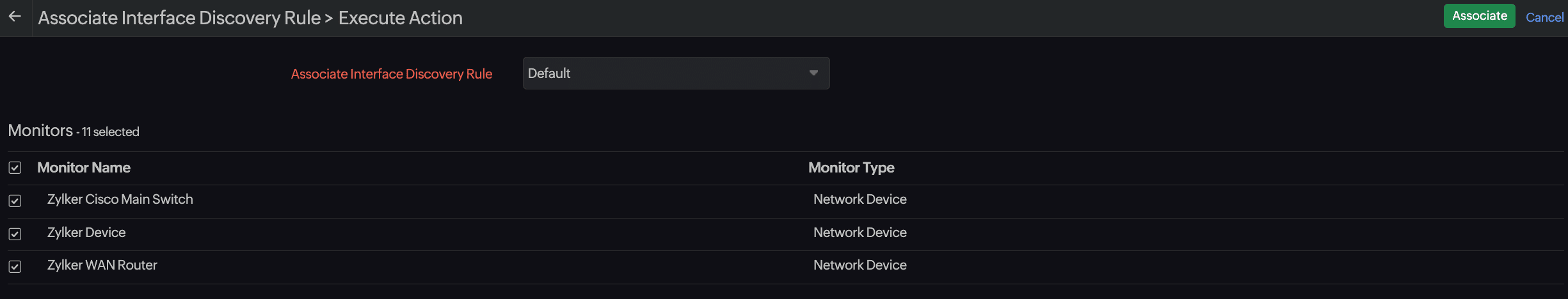 - Associate Interface Discovery Rule: Apply interface discovery rules to multiple monitors to control which interfaces are discovered and monitored.