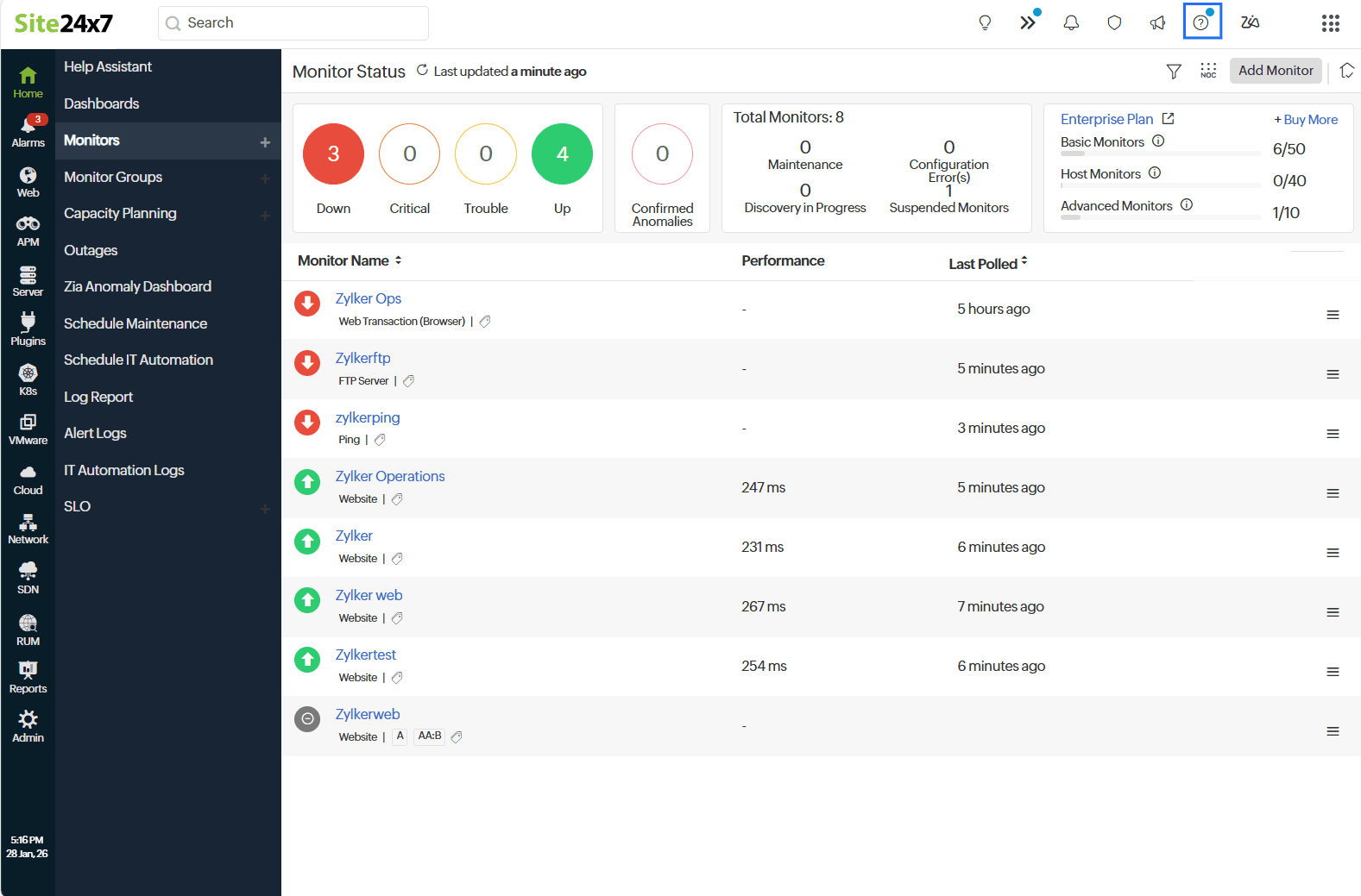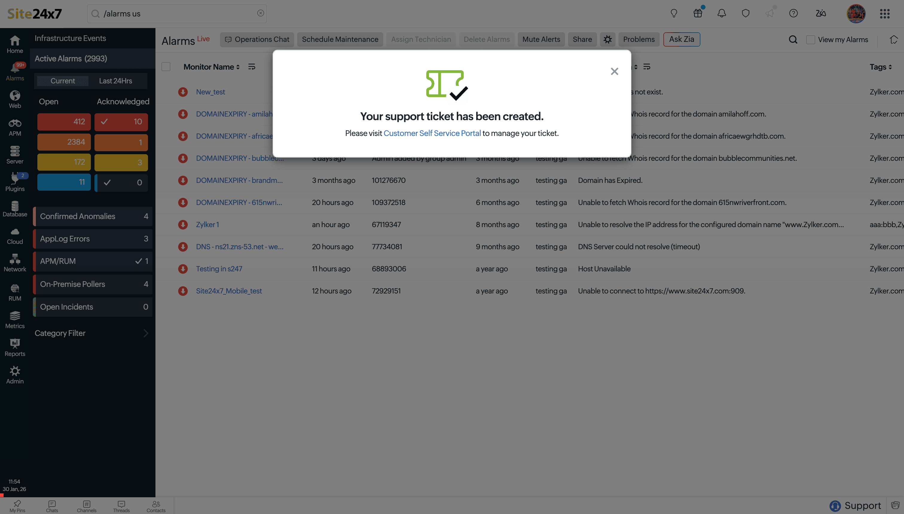 • Feature guidance: The Site24x7 support team can provide clarity on feature behavior or workflows to help you achieve the desired monitoring outcome.
