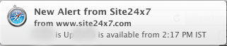 Site24x7 offers native browser push notifications for Site24x7 status alerts in Chrome, Firefox, Safari, and Opera browsers. Site24x7 uses this feature to provide you with notifications in the background. During the first time alone, you'll be asked for permission by Site24x7 to send notifications to your browser. Once you assign permission, you'll start to receive push notifications for all down, trouble and up alerts. Once you click this notification, you'll be redirected to the relevant monitor details page inside the client.