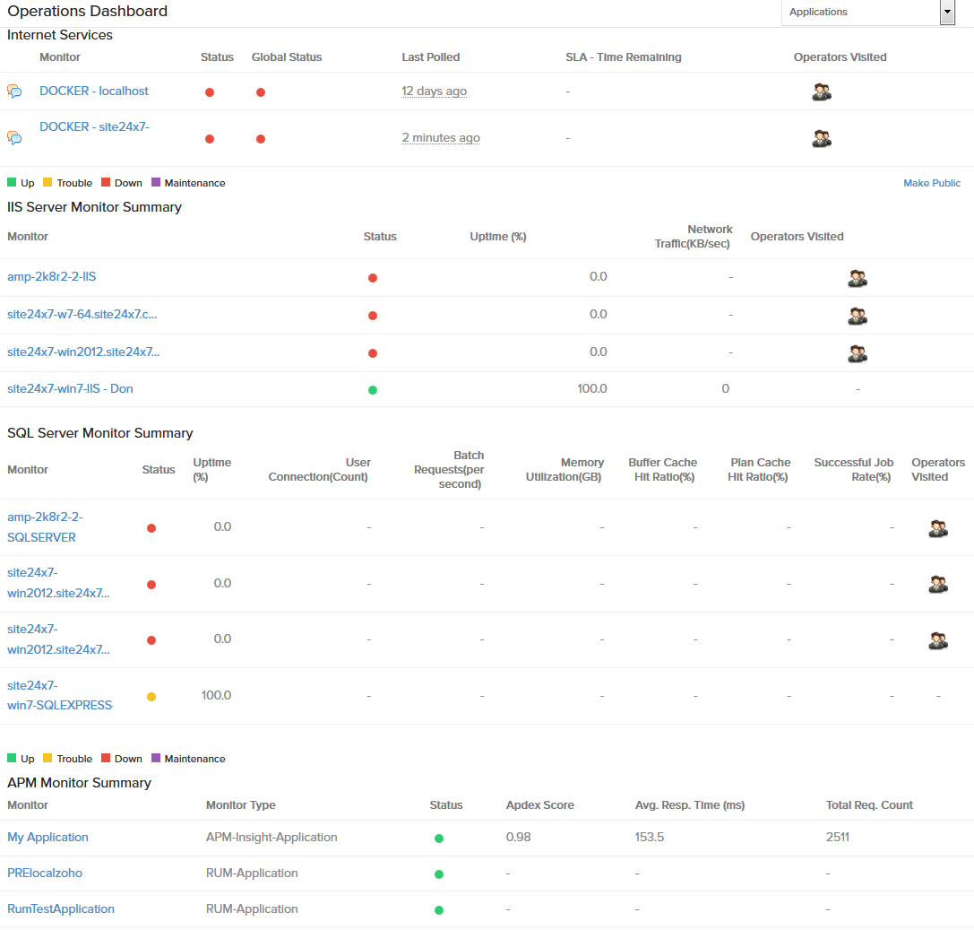 Get an at-a-glance status of all applications and servers monitored. Simple embed options make it really useful for a NOC.