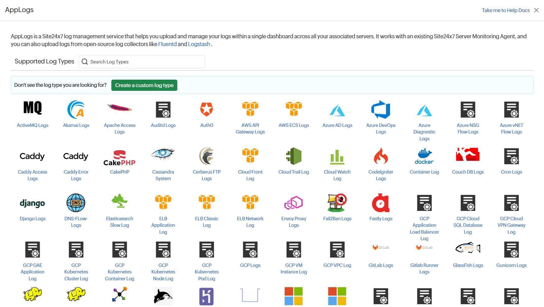 - In the AppLogs pop-up, click Create a custom log type.