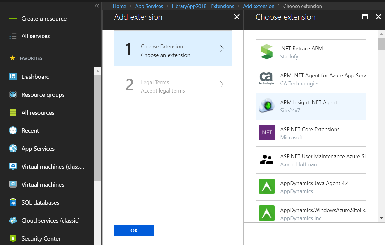 - Select the extension APM Insight .NET Agent based on your application platform.