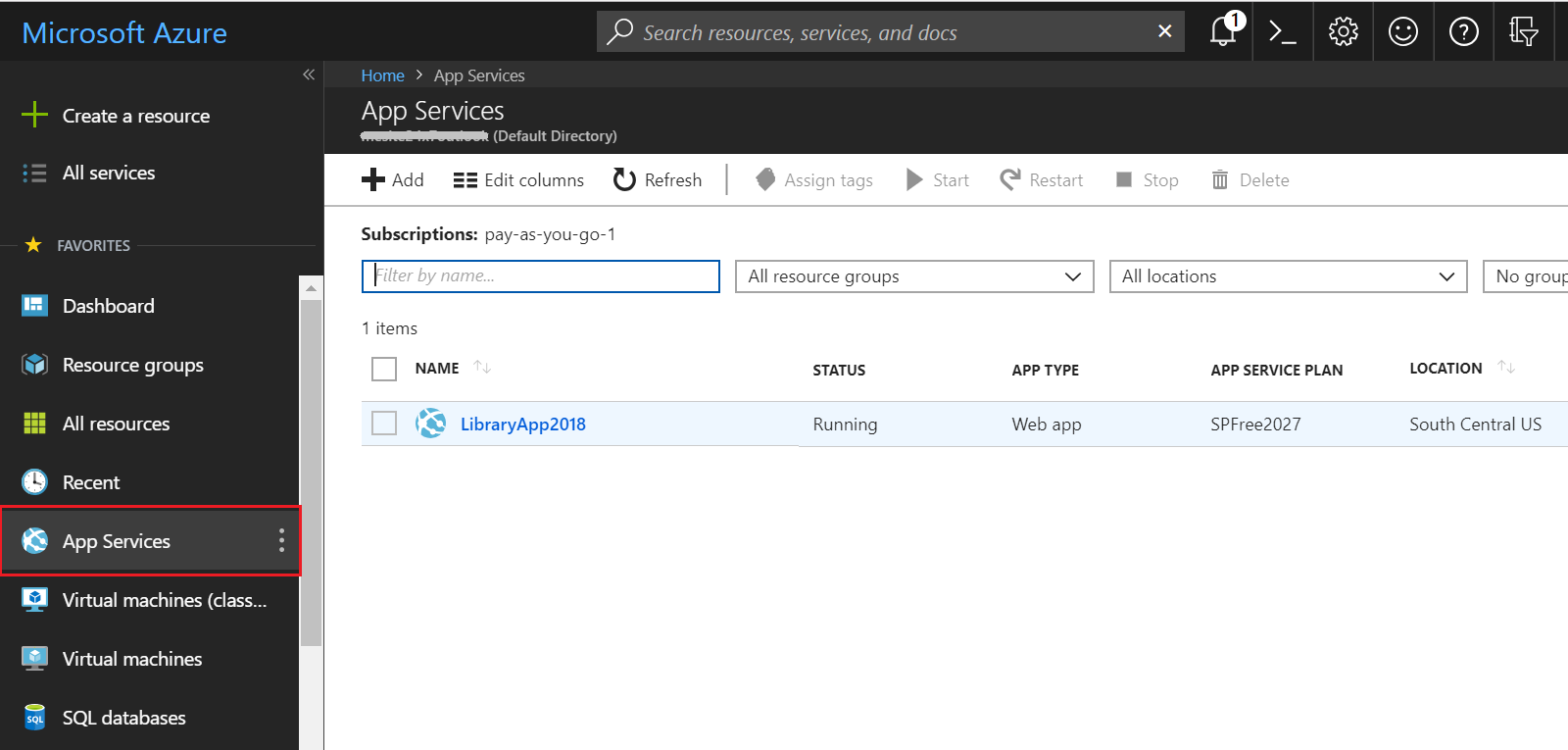 - Log in to portal.azure.com and navigate to your web app listed in the App Services tab.
