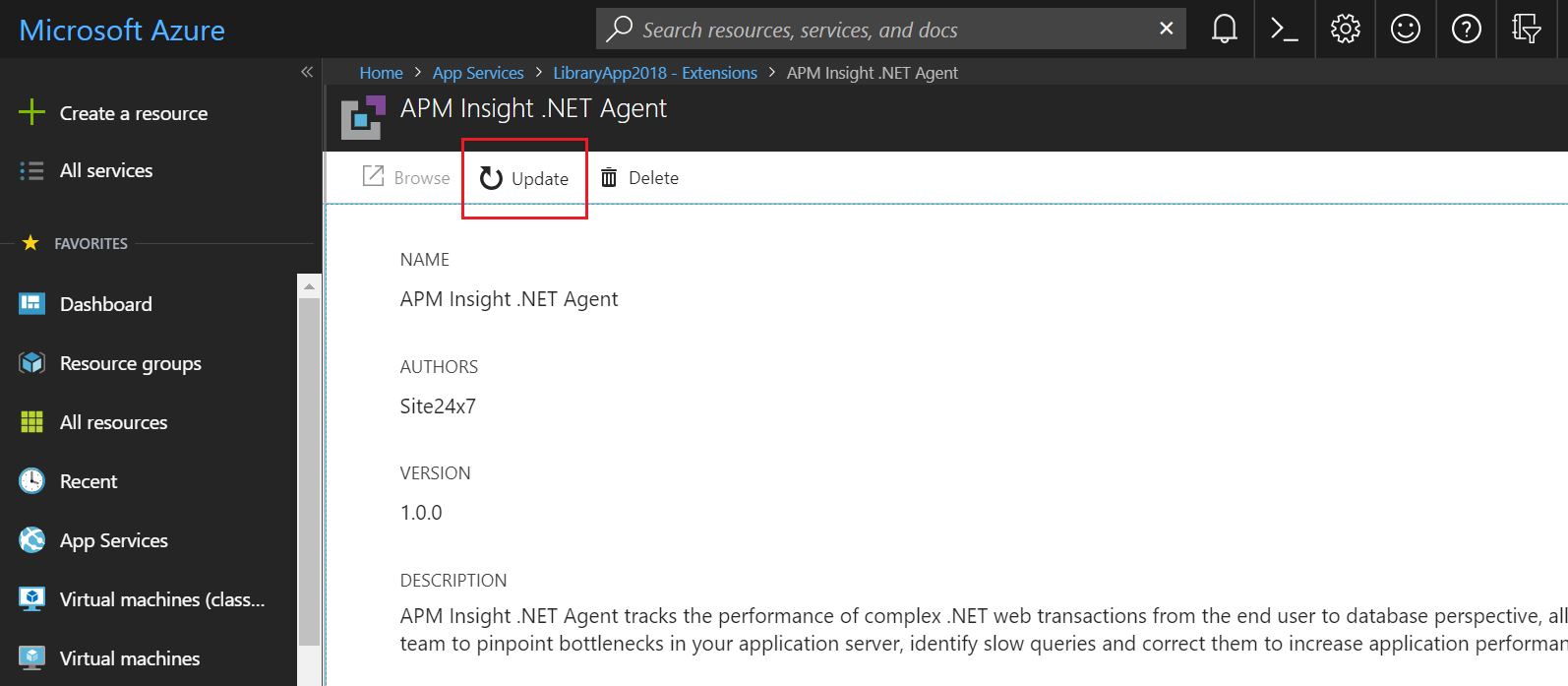 To upgrade .NET agent to monitor your Azure web apps, follow the instructions given below: