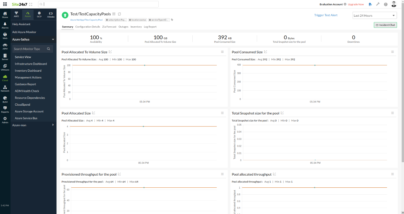 - In the Site24x7 web client, go to Cloud > Azure > Azure NetApp Files Capacity Pool.