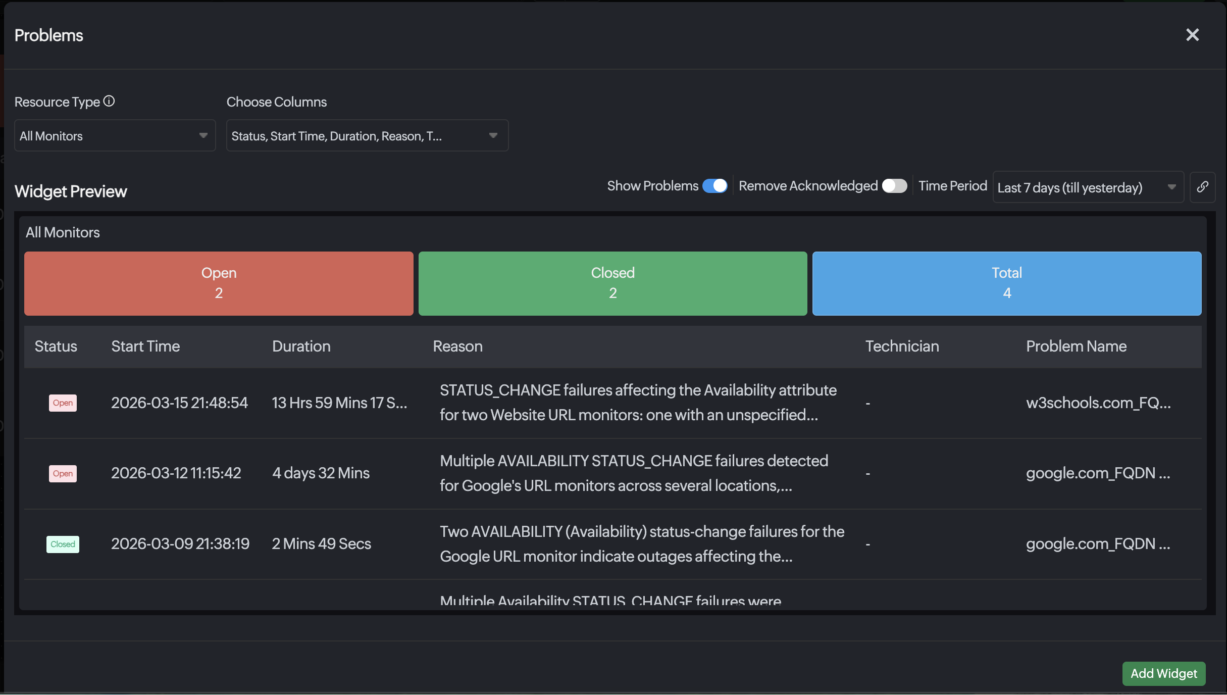 To display the On-Premise Poller Health Dashboard in your widgets, select All On-Premise Pollers in the Resource Type field.