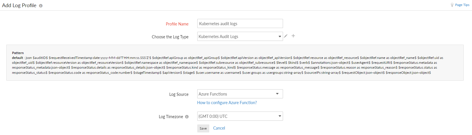 - For the Log Type, enter Kubernetes Audit Logs. This will automatically populate the rest of the fields.