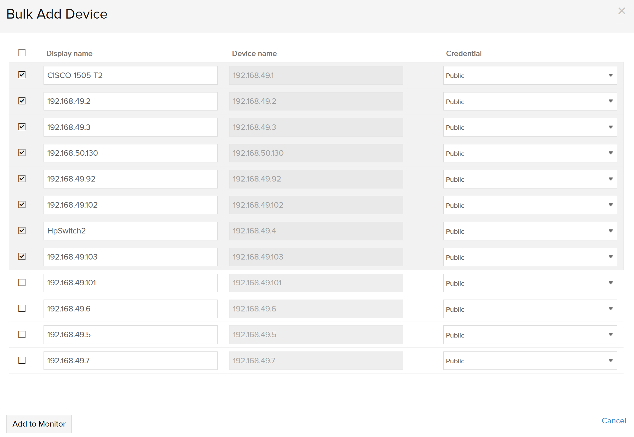- Device List: A Device List of all the unmonitored devices will appear. Select the devices that you wish to monitor and click Next.