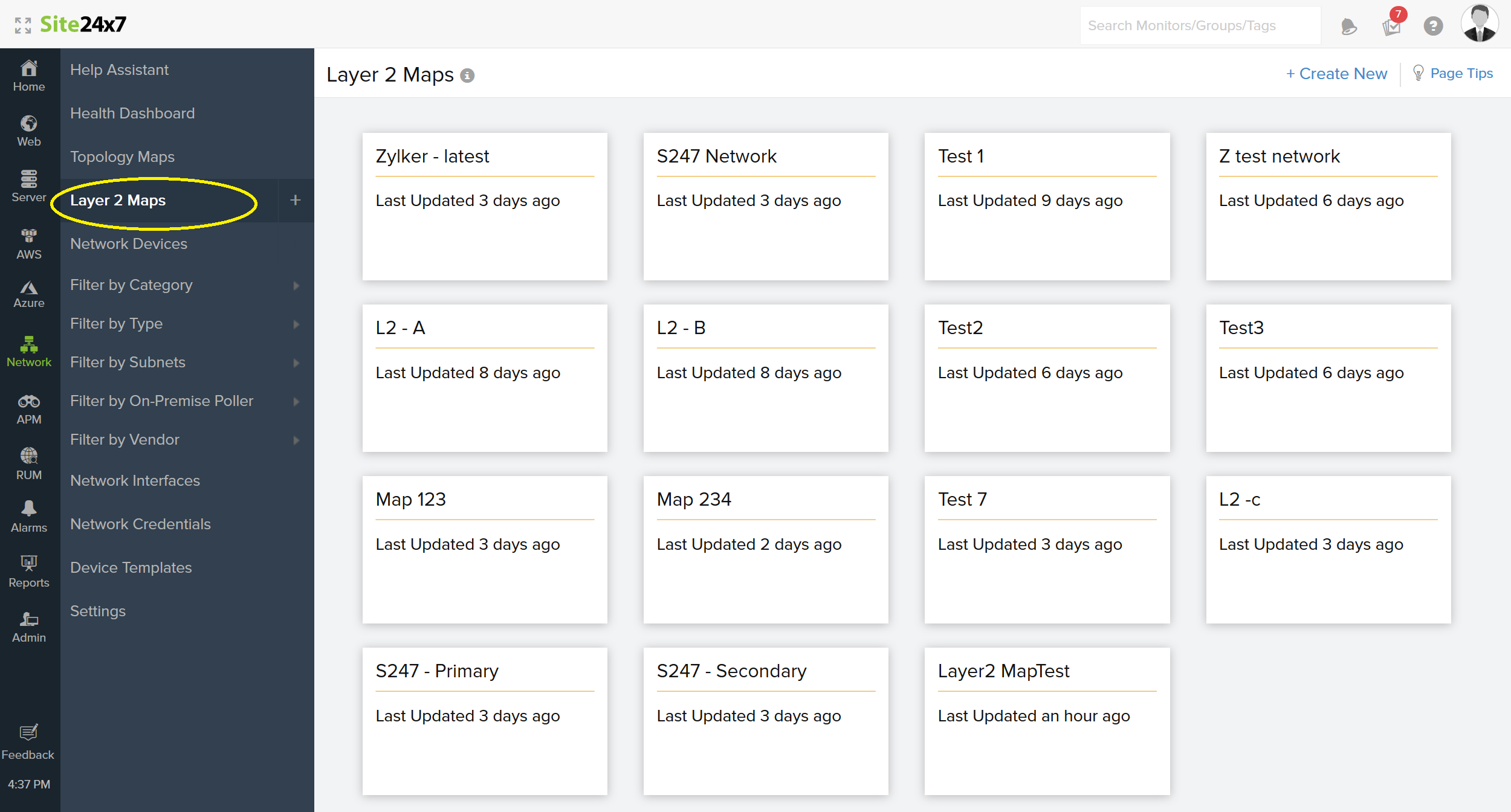 Tracking a network's connections and monitoring each of its nodes and links requires mapping tools that are capable of discovering the various layers of that network. Site24x7's Layer 2 Maps help network professionals get a detailed view of the physical interconnections existing in their networks.
