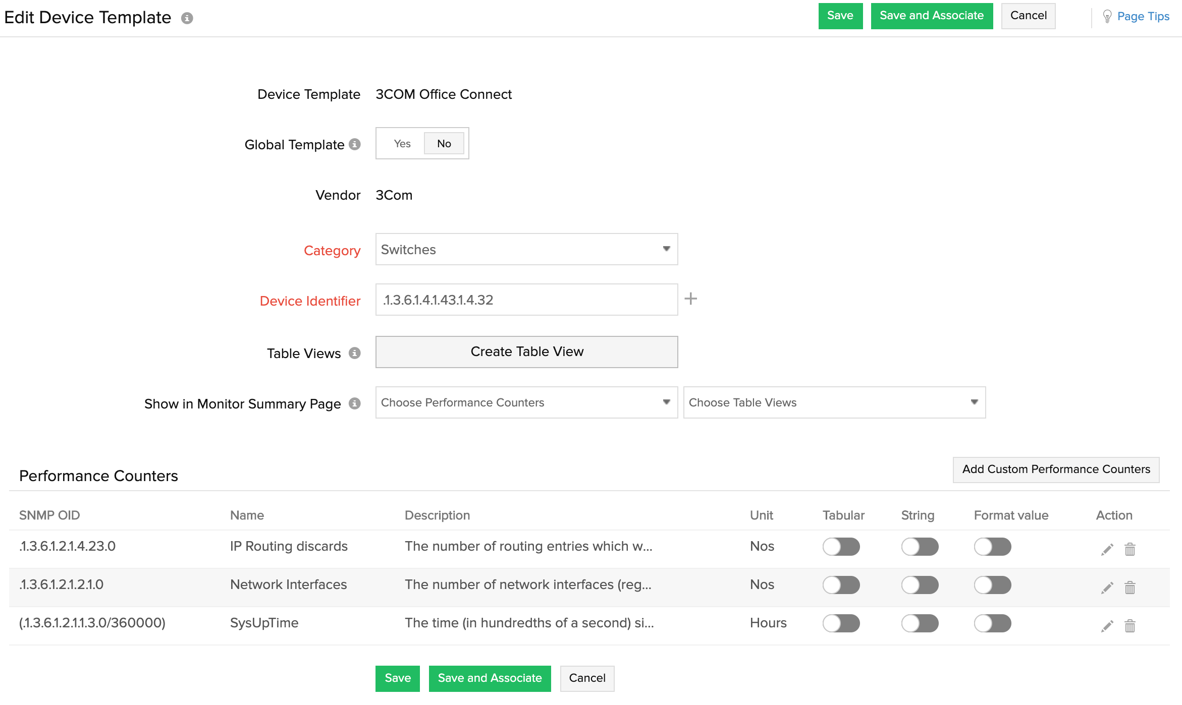 8. Click Save to save your changes. Click Save and Associate if you wish to associate this device template containing new performance counters with a set of network devices.