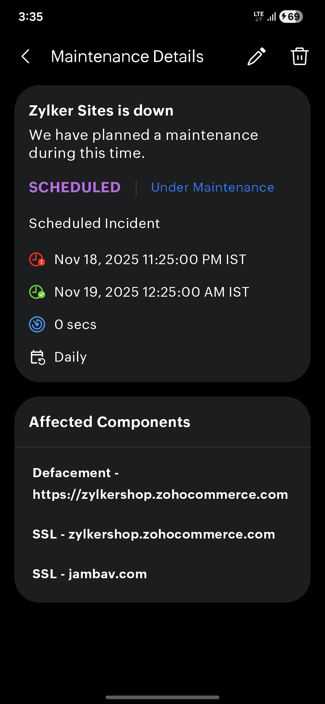 icon. - Schedule end time: Displays when the maintenance ended near the